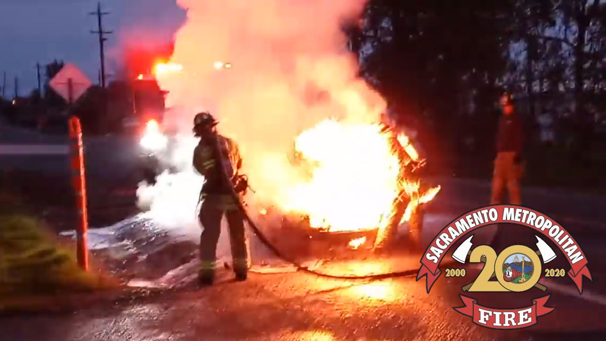 This morning at around 6:39am, Metro Fire Engine 111 from Station 111 in Rio Linda was called to the intersection of Q Street at Rio Linda Blvd. for a fully involved white Toyota Camry sedan.