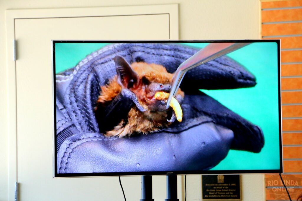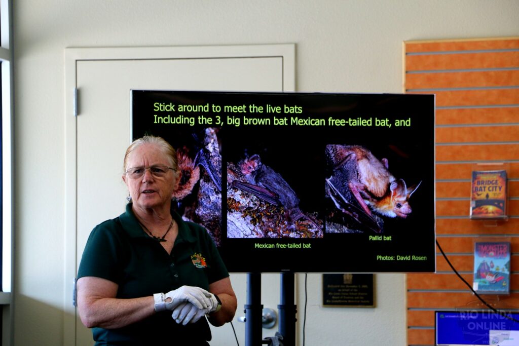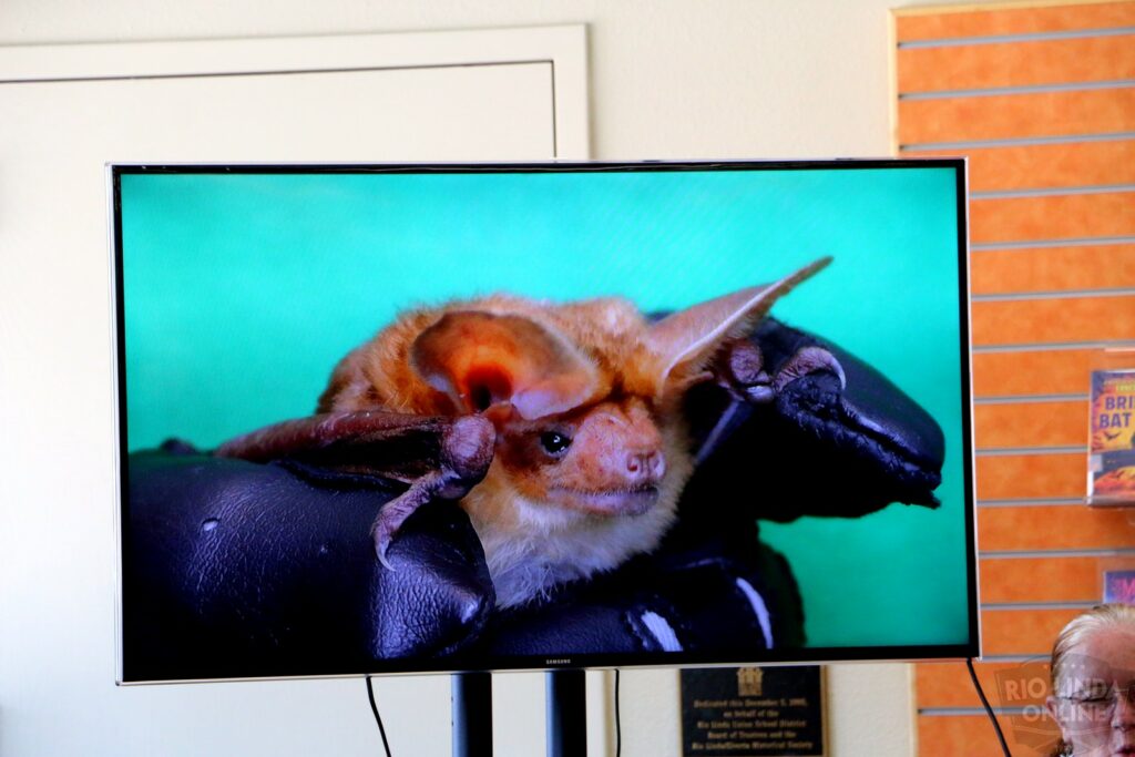 Corky Quirk, an expert in bat conservation and education, captivated the audience with her presentation. She brought along three different species of bats, providing attendees with an up-close look at these nocturnal mammals via a large-screen television. The bats on display included the Mexican Free-tailed Bat, the Big Brown Bat, and the newly designated California State Bat, the Pallid Bat.