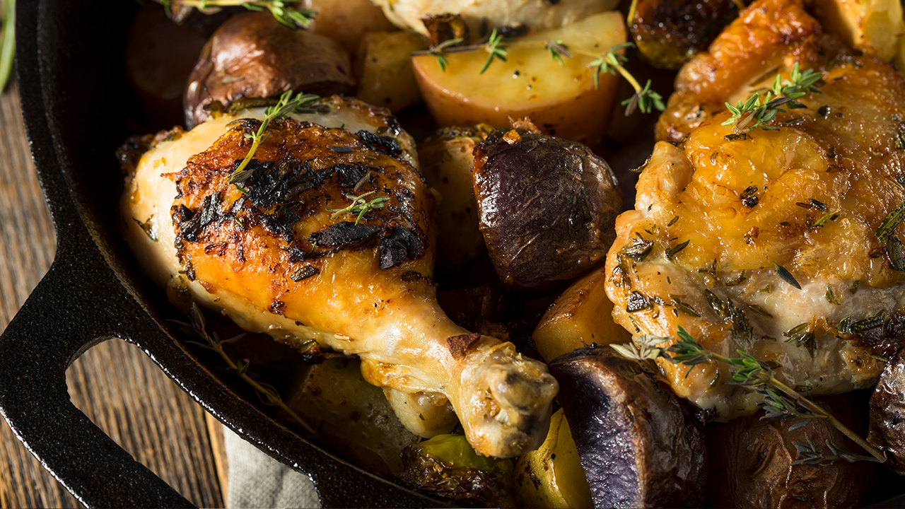 - 2½-3 pounds bone-in, skin-on chicken legs and thighs (patted dry)